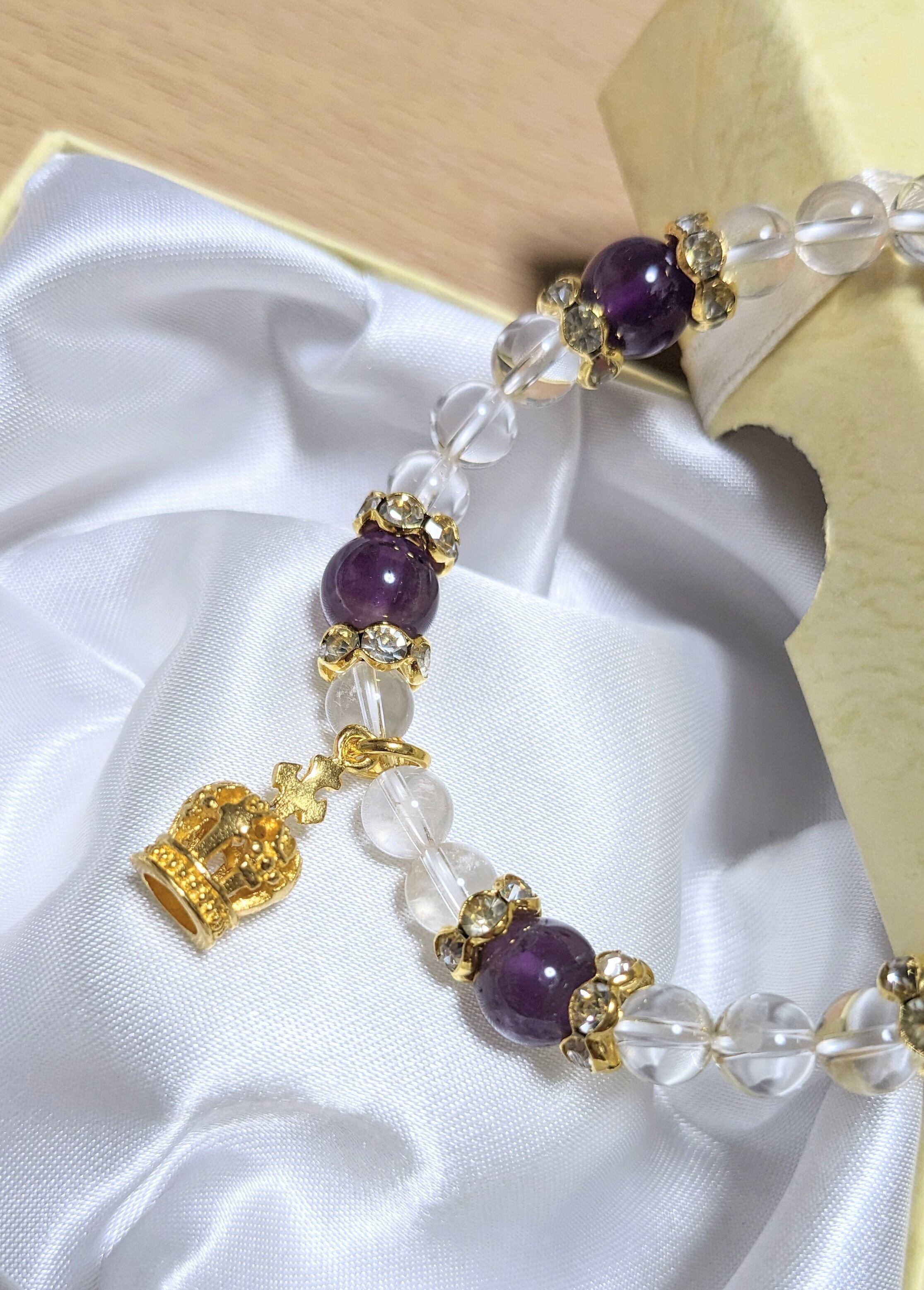 アメジスト&水晶のブレスレット(王冠チャーム付)