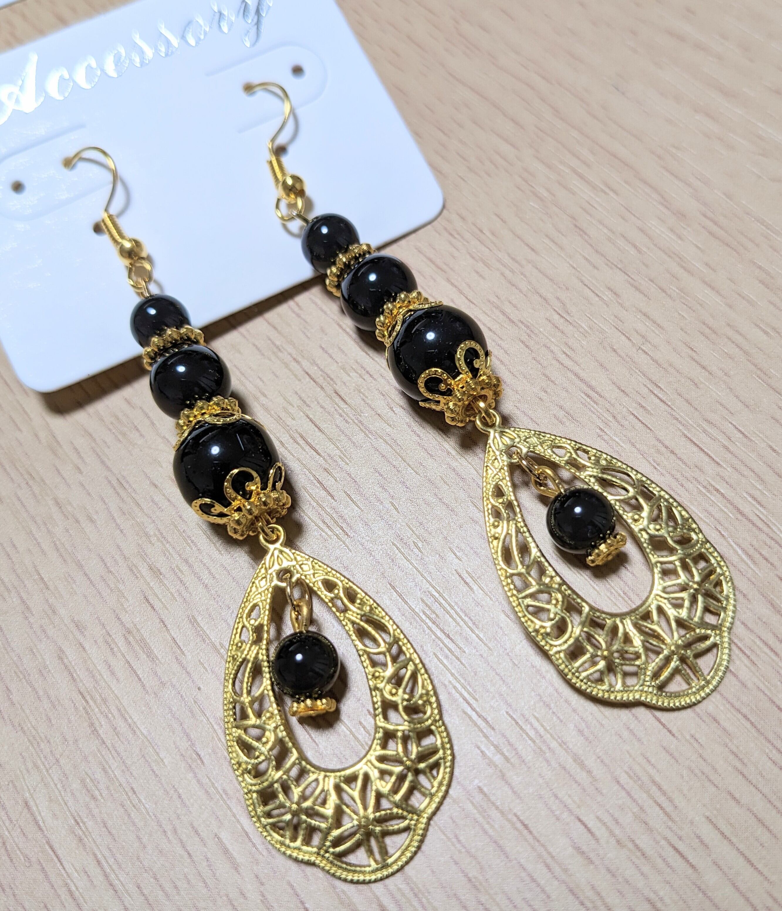 ブラックオニキスの石は輝きが美しく、耳元で揺れるたびに周りの視線を集めます。