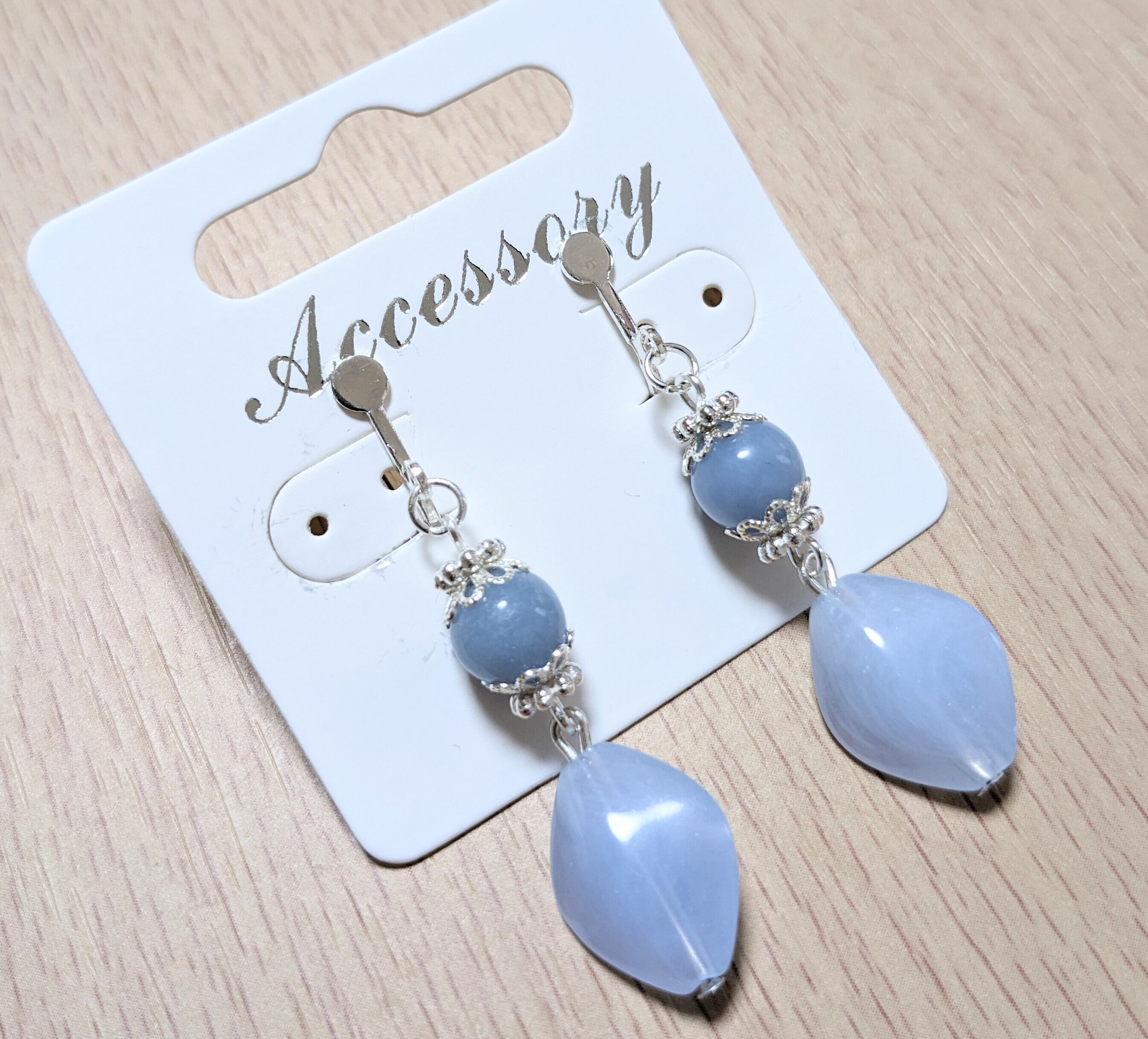 人気のエンジェライトのイヤリング、是非お手元に置いて、穏やかな時を過ごしてみてください。