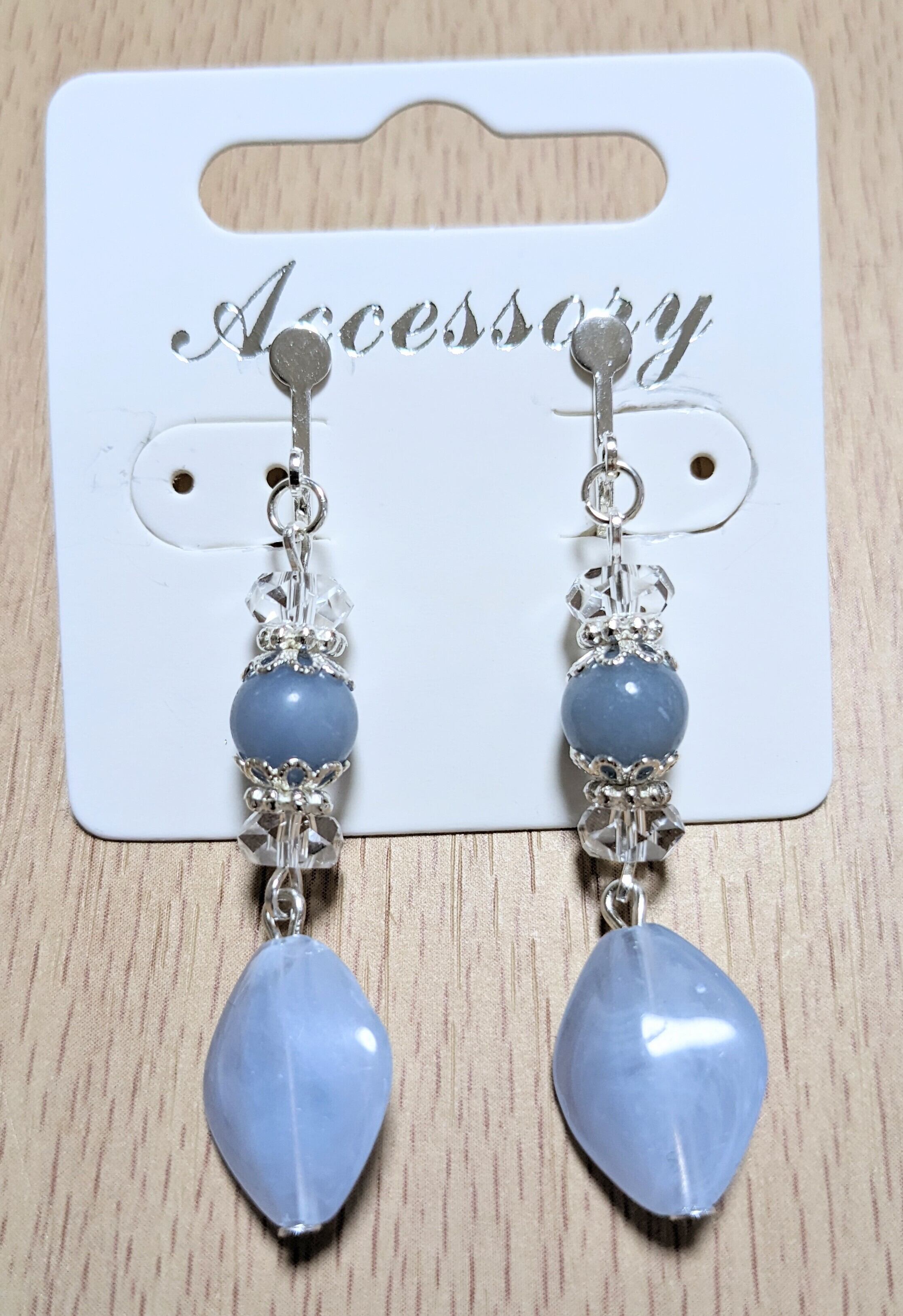 天使の石、エンジェライトを使った美しいイヤリングです。エンジェライトは、天使からのメッセージを届けると言われる石。その優しい波動に包まれながら、普段の生活や仕事でも心が整います。