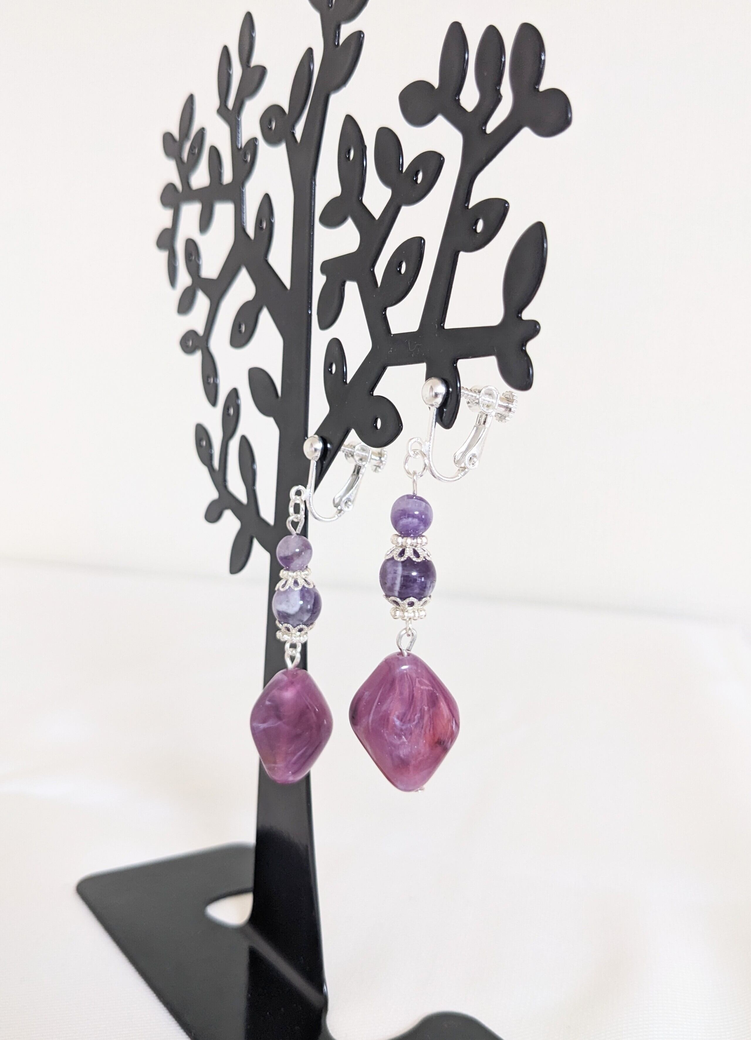 ケープアメジストとパープルマーブルビーズのシルバーイヤリング♡
