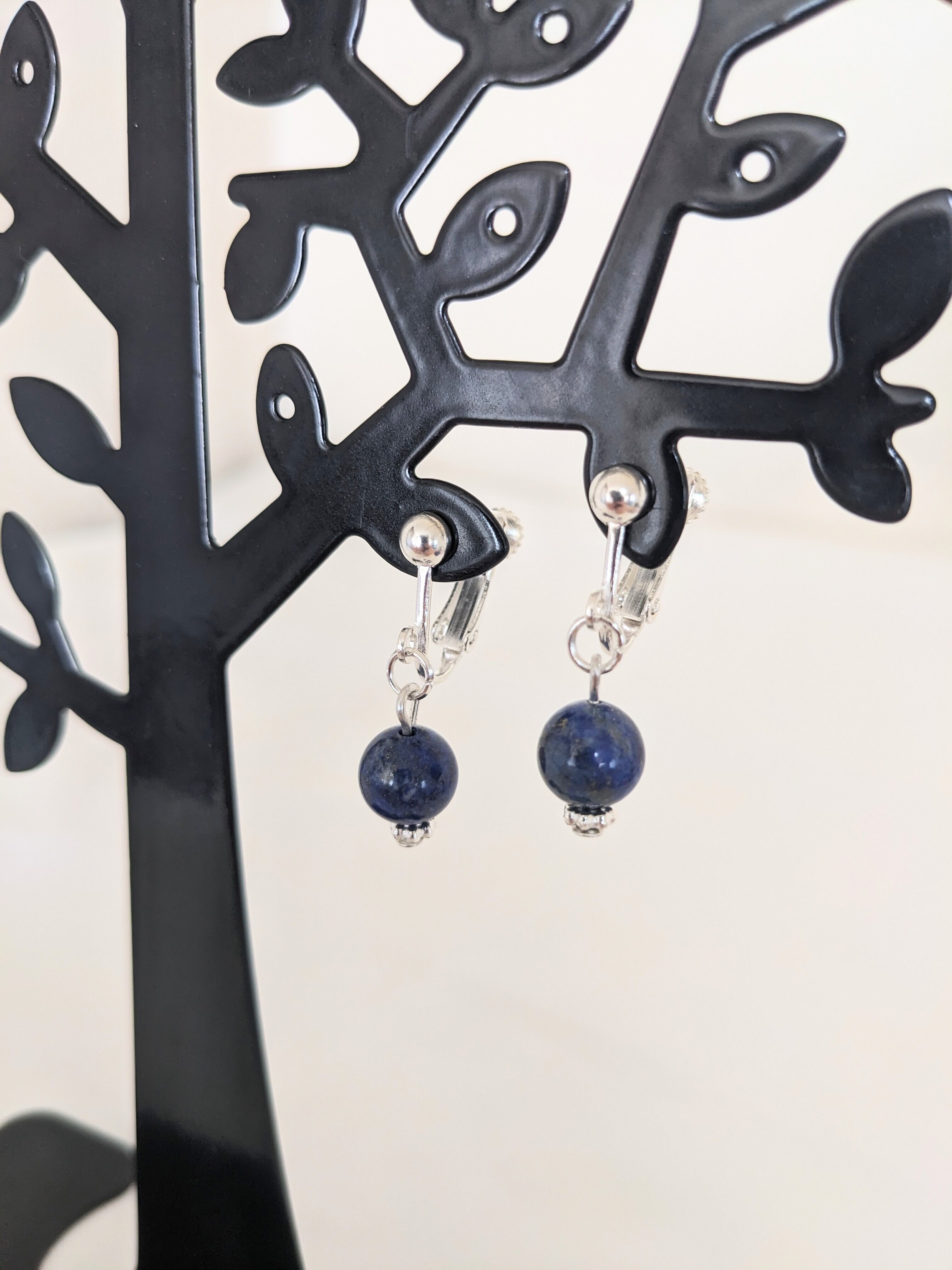 幸せを運ぶ9月の誕生石、ラピスラズリを使用したシルバーのイヤリングです。