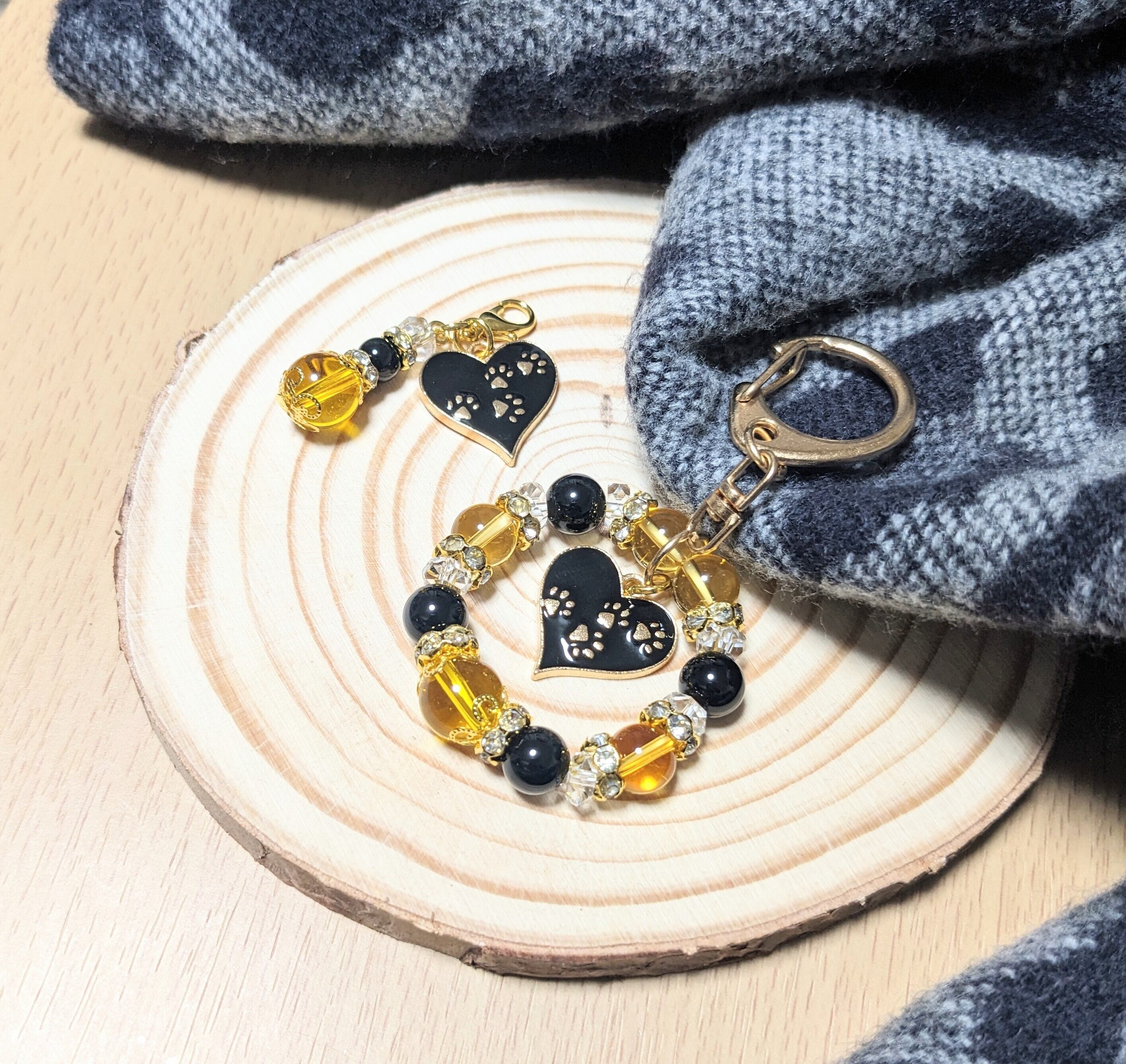 シトリン&ブラックオニキスと足跡チャームセット