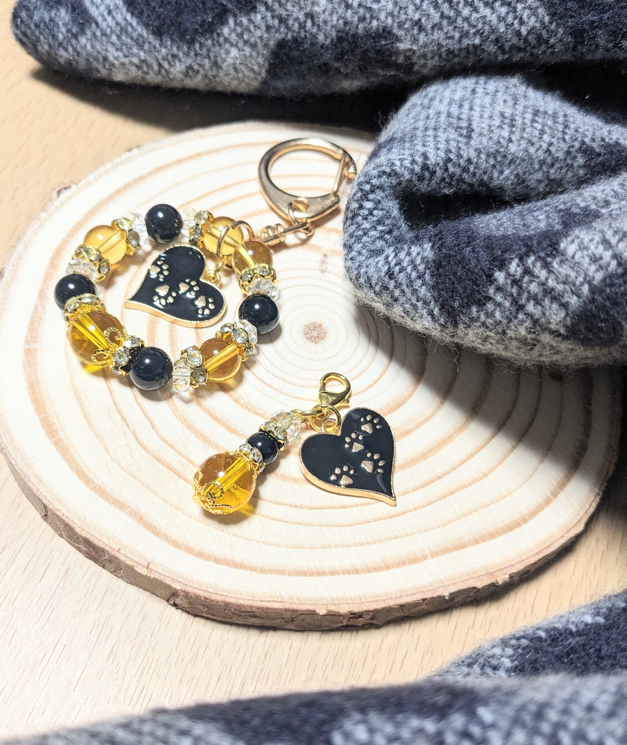シトリンとブラックオニキスを組み合わせたハートに足跡つきのチャームです。
