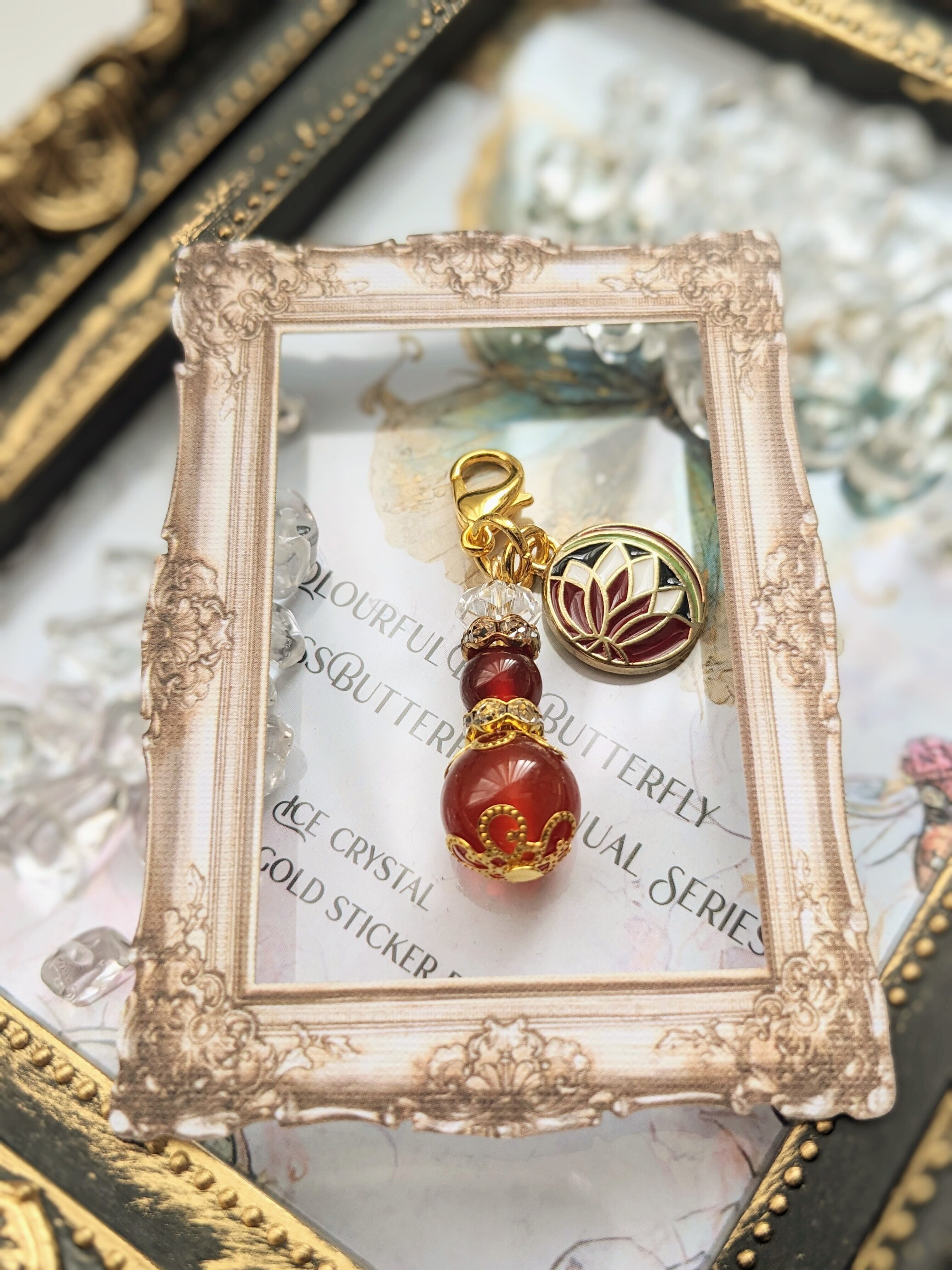 蓮と赤メノウのチャーム。