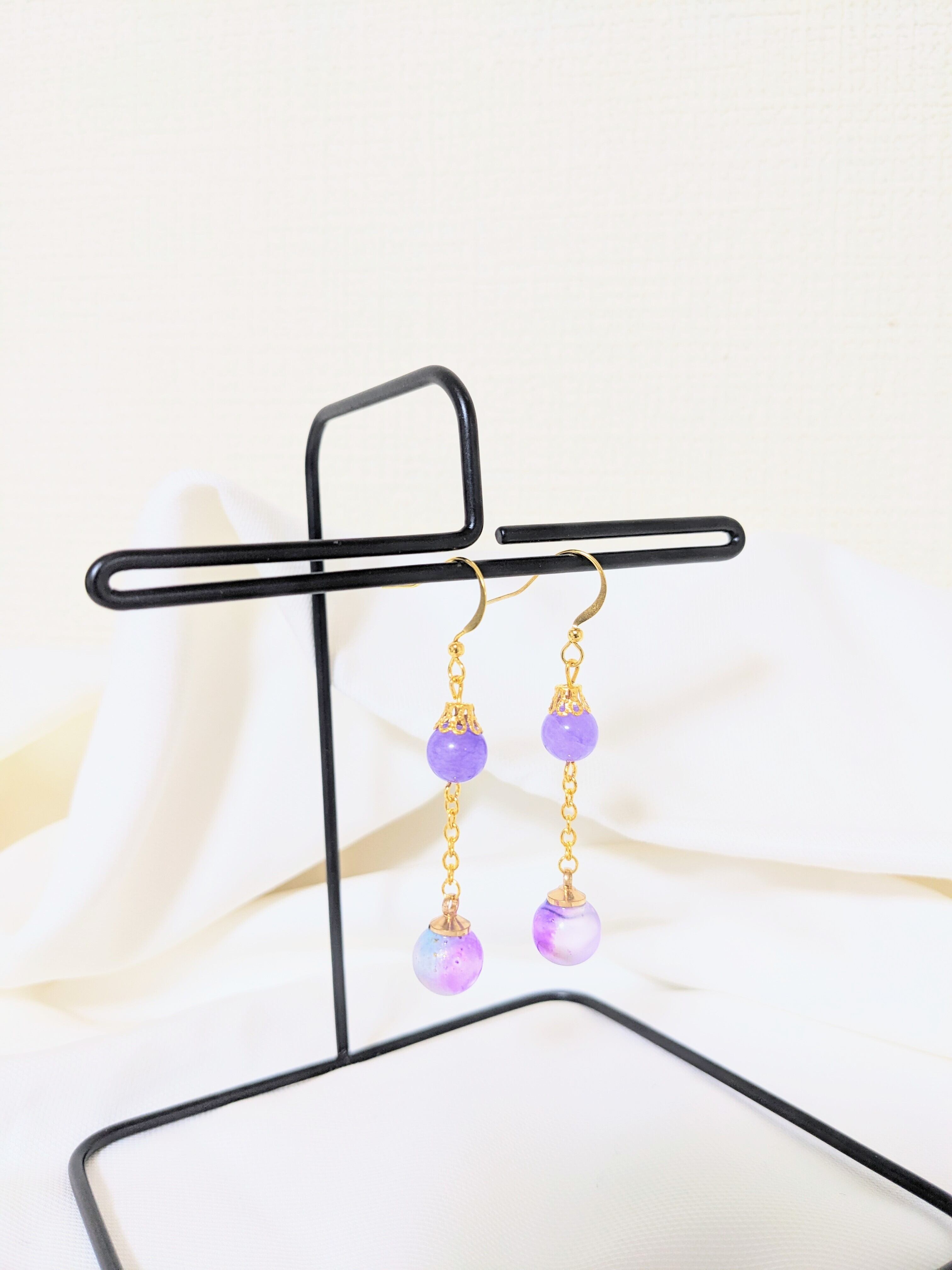 パープルジェードとドジャーブルー系カラーの硝子チャームのピアスです♡